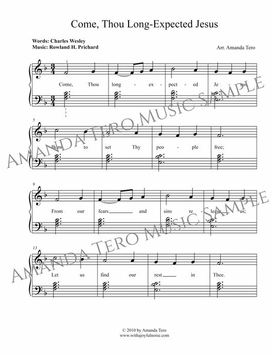 Come, Thou Long-Expected Jesus beginner Christmas piano sheet music solo