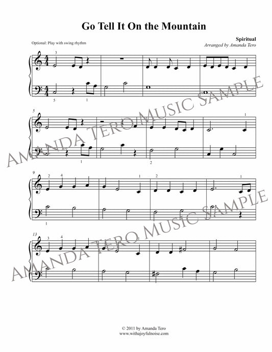 Go Tell it On the Mountain elementary Christmas piano sheet music solo