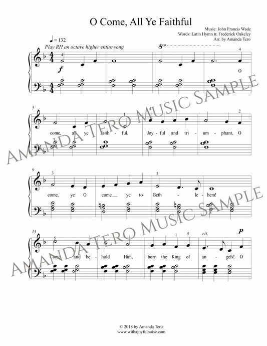 O Come, All Ye Faithful elementary Christmas piano sheet music solo