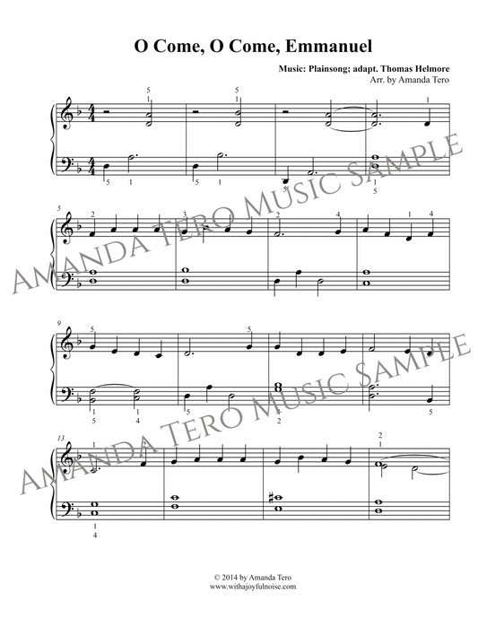 O Come, O Come, Emmanuel elementary Christmas piano sheet music solo