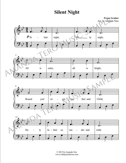 Silent Night Elementary Christmas Piano Sheet Music Solo