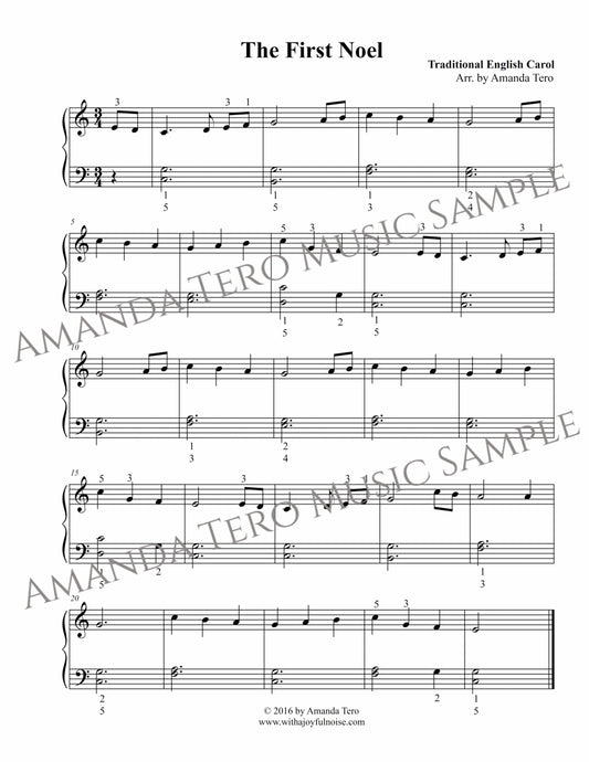 The First Noel with left hand melody elementary Christmas piano sheet music