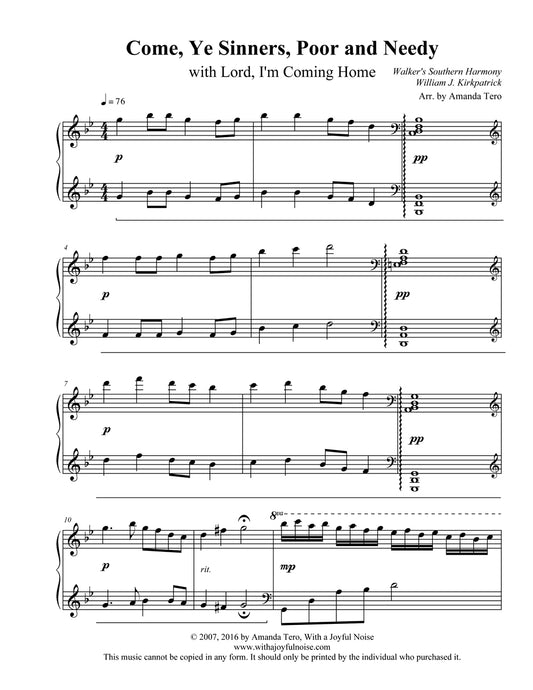 Come, Ye Sinners, Poor and Needy with Lord, I'm Coming Home late intermediate piano solo