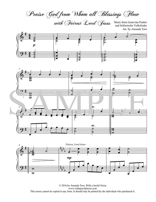 Doxology Fairest Lord Jesus medley late intermediate piano solo