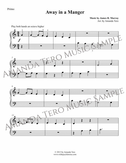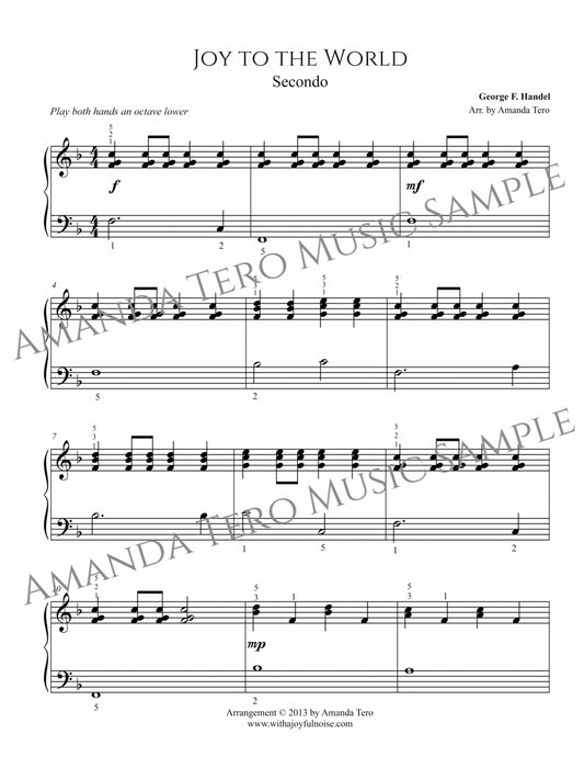 Joy to the World beginner elementary Christmas piano duet sheet music