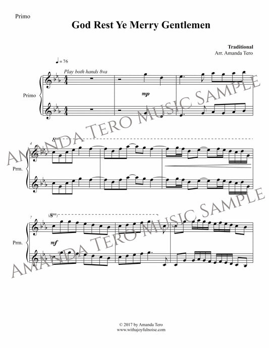 God Rest Ye Merry Gentlemen advanced Christmas piano duet sheet music