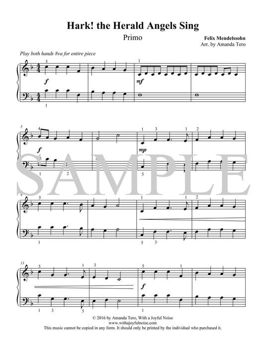Hark! the Herald Angels Sing - intermediate piano duet sheet music