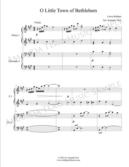 O Little Town of Bethlehem early advanced Christmas piano duet sheet music