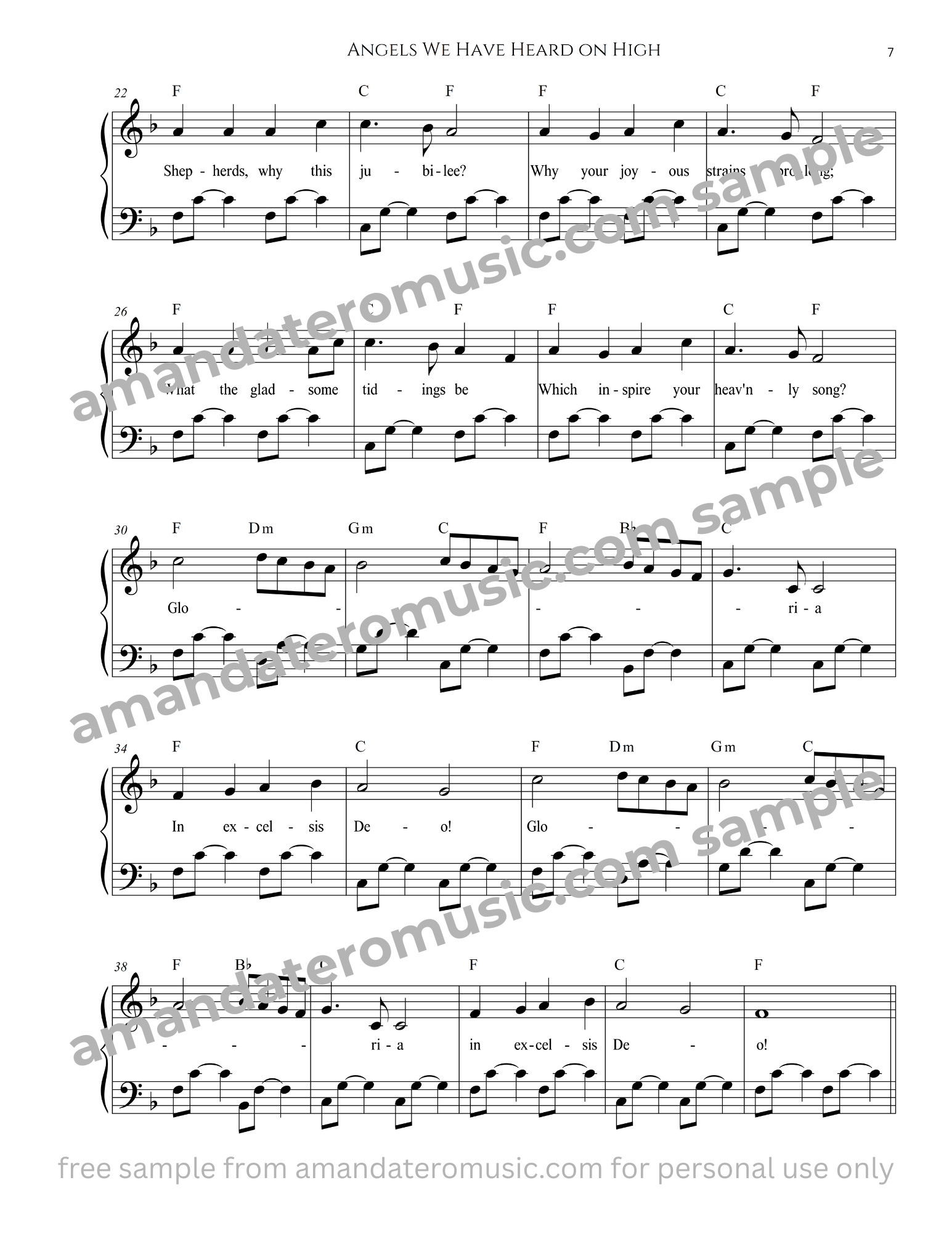 The first 3 verses of the arrangements uses the 3 LH patterns that are presented with the carol. If there are more than 3 verses, I have given you even more LH patterns you could use. This will help you expand your playing even more.